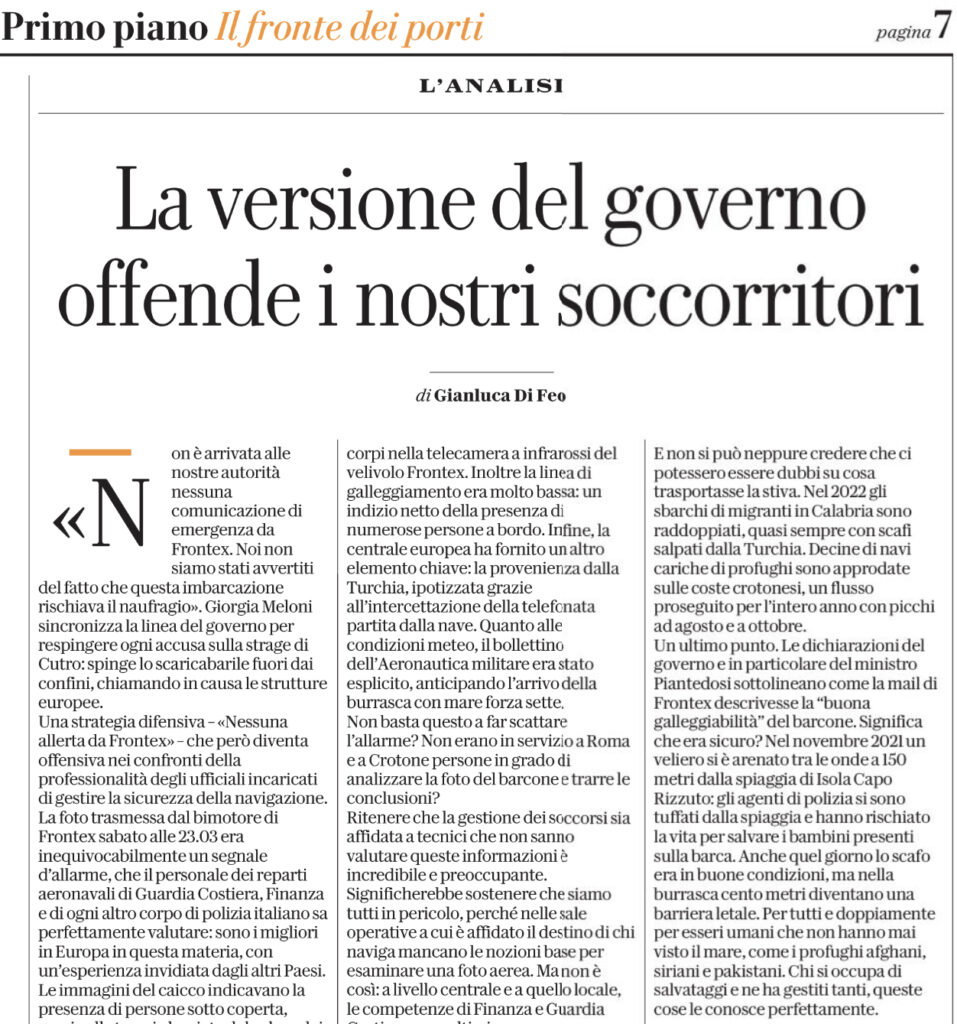 La presidente del Consiglio ha anche risposto in merito alla lettera che il sindaco di Crotone le ha inviato: “La lettera del sindaco di Crotone non l’ho letta tutta – ha spiegato -. Posso solo dire che io sono rimasta colpita dalle ricostruzioni di questi giorni. Ma davvero, in coscienza, c’è qualcuno che ritiene che il governo abbia volutamente fatto morire 60 persone? Vi chiedo se qualcuno pensa che se si fosse potuto salvare 60 persone, non lo avremmo fatto. Vi prego, siamo un minimo seri”.